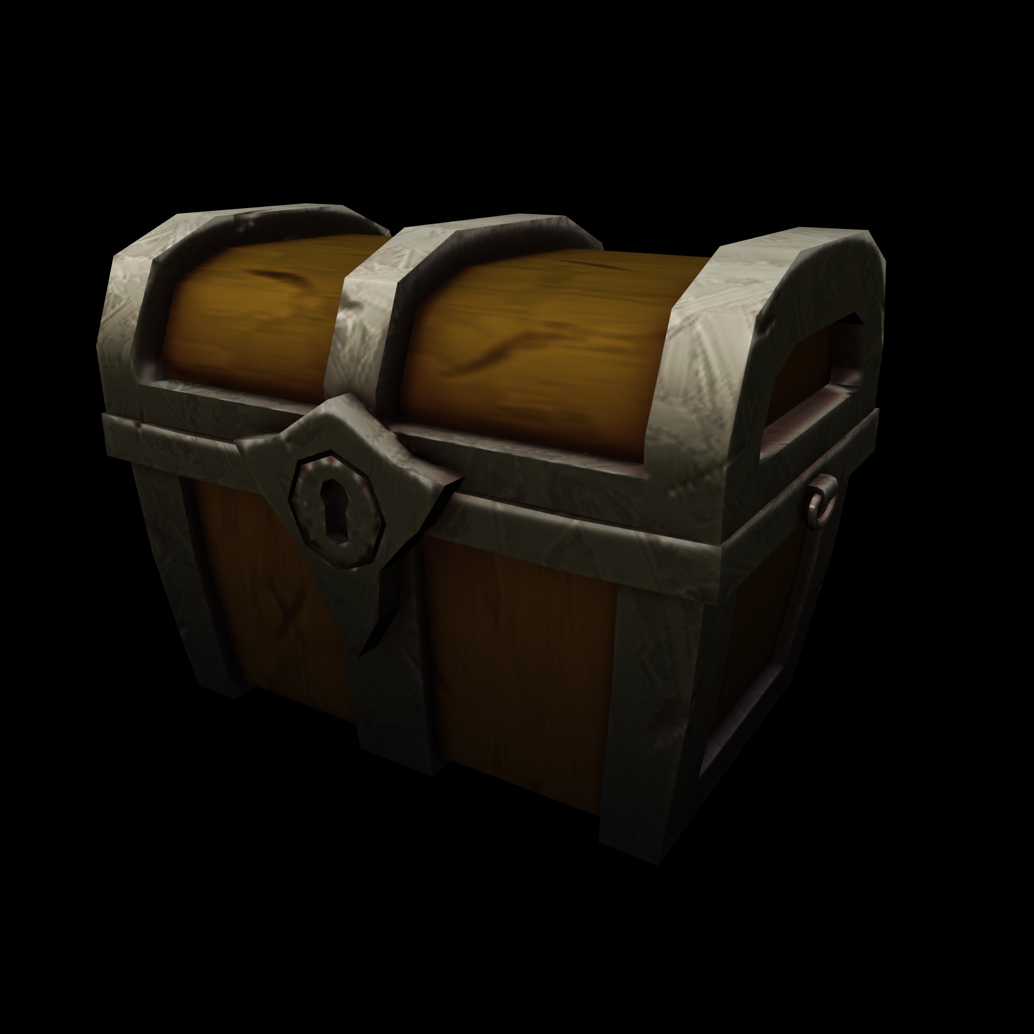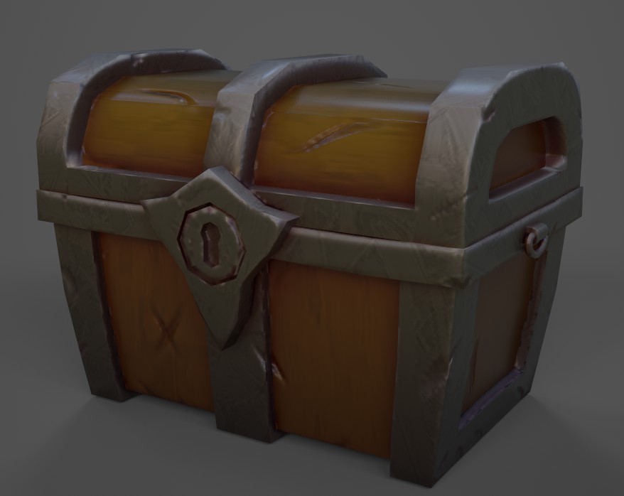 Stylized game-ready chest with wooden body and metal reinforcements. Optimized for games and real-time rendering. Features detailed lock and metal corner brackets